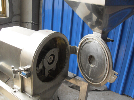 本机组有电动机,粉碎机座,粉碎室,粉碎刀盘,粉碎刀片组成。设备的设计原理是通过高速撞击和剪切达到对物料的破碎或细碎,高速旋转的刀片对物料产生了剪切,同时在设备刀盘的外围设置了齿盘,以有利于对物料的被动撞击,物料经过粉碎达到制品要求,该机组是制药、食品、化工工业的好机械。